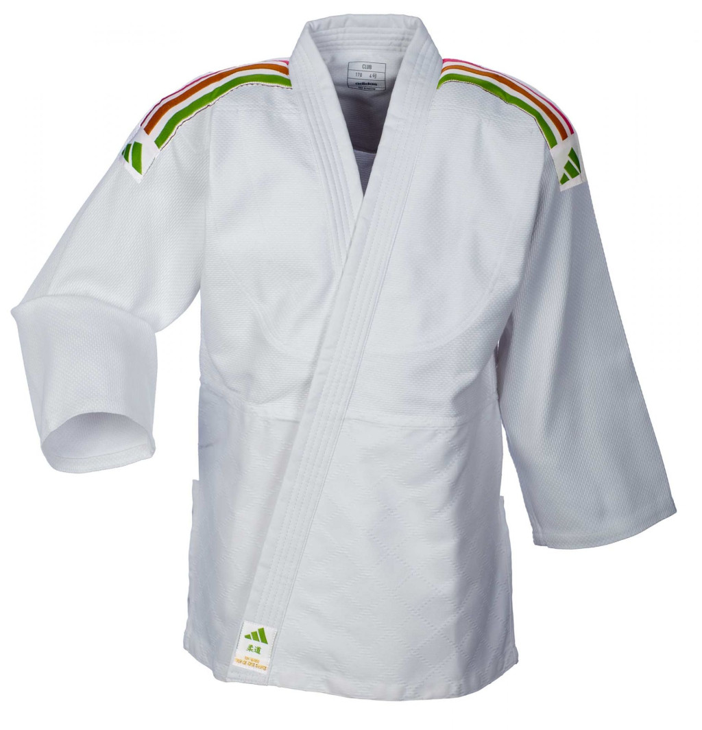 Judo ruha - Club J350 - fehér, színes csíkokkal - ADIDAS