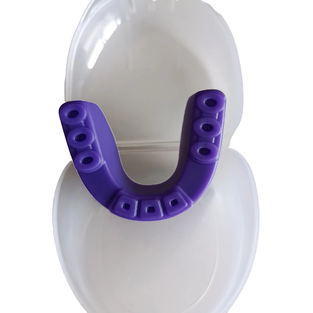 A méret beállításához először tedd a fogvédőt 90°C-os forró vízbe 30-60 másodpercre, majd gyorsan helyezd azt hideg vízbe, hogy ne égesse meg a szád. Ezután helyezd a fogvédőt a felső fogsorodra, majd harapj rá pár másodpercig (de ne túl erősen). A pontos illeszkedés érdeklében a nyelveddel igazíts rá a fogsorodra, végezetül pedig tedd a fogvédőt hideg vízbe. Amennyiben elsőre nem sikerülne jól, ismételd meg a leírt műveletet elölről.